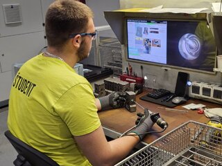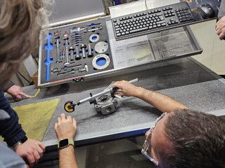 Druhý deň nás sprevádzal technológ p. Pavol Harvánek v jednej z výrobných hál spoločnosti, kde sme mohli pozrieť praktické ukážky a oboznámiť sa s presným meraním výrobkov a komponentov, či už ručným na jednotlivých pracoviskách pomocou rôznorodých moderných meracích prostriedkov (posuvné meradlá, hĺbkomery, kalibre, špecializované meracie prístroje), alebo aj pokročilým systémom merania prostredníctvom 3D meracích strojov v špecializovanom oddelení metrológie. Taktiež sme spoznali oddelenie hodnotenia kvality, kde sme sa dozvedeli o príprave vzoriek na hodnotenie tvrdosti, štruktúry a iných kontrolovaných hodnôt, ktoré tieto rozličné parametre a aspekty výrobkov skúma od „bežného“ optického mikroskopu, cez pokročilejšie RTG až po využitie profesionálneho elektrónového mikroskopu.